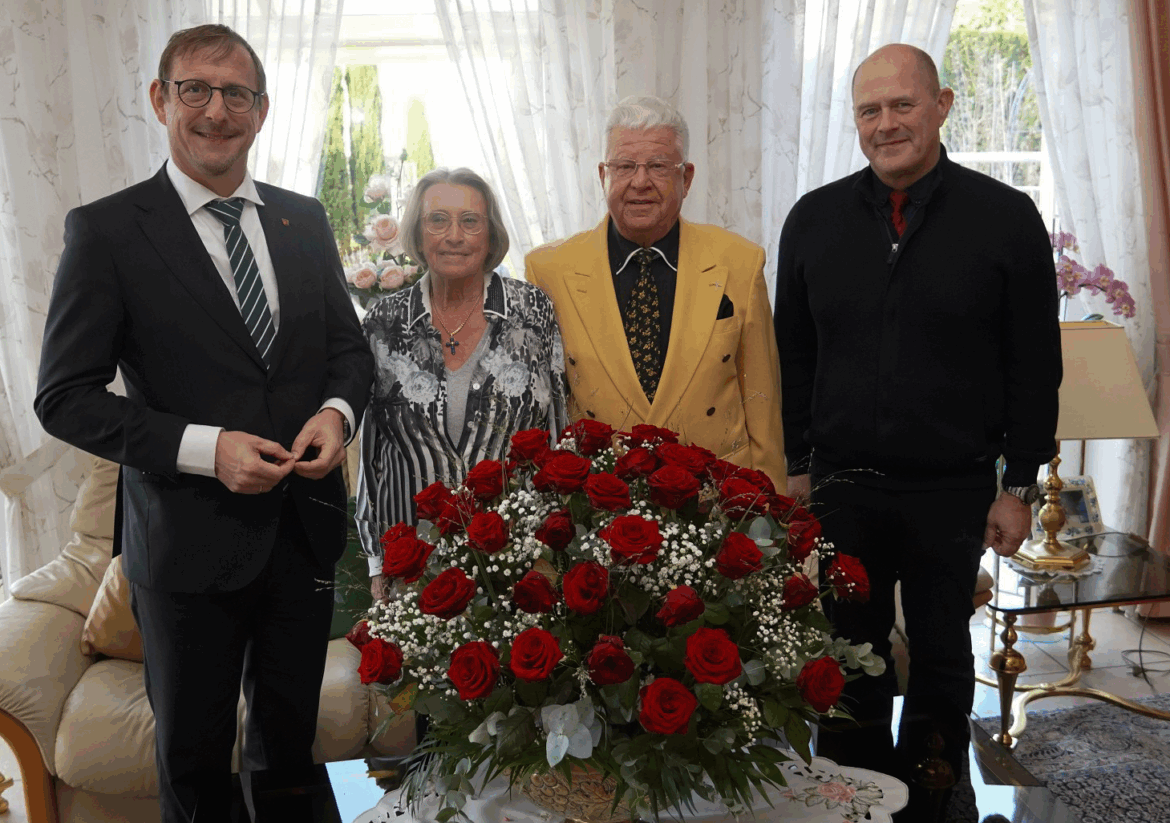 Sechs Jahrzehnte nach ihrer Hochzeit in Münster feierten Gudrun und Helmut Engel nun ihre Diamantene Hochzeit. Landrat Thomas Barth gratulierte persönlich und überbrachte gemeinsam mit dem Bürgermeister der Verbandsgemeinde Gau-Algesheim, Benno Neuhaus, die Glückwünsche der Kreisverwaltung Mainz-Bingen.